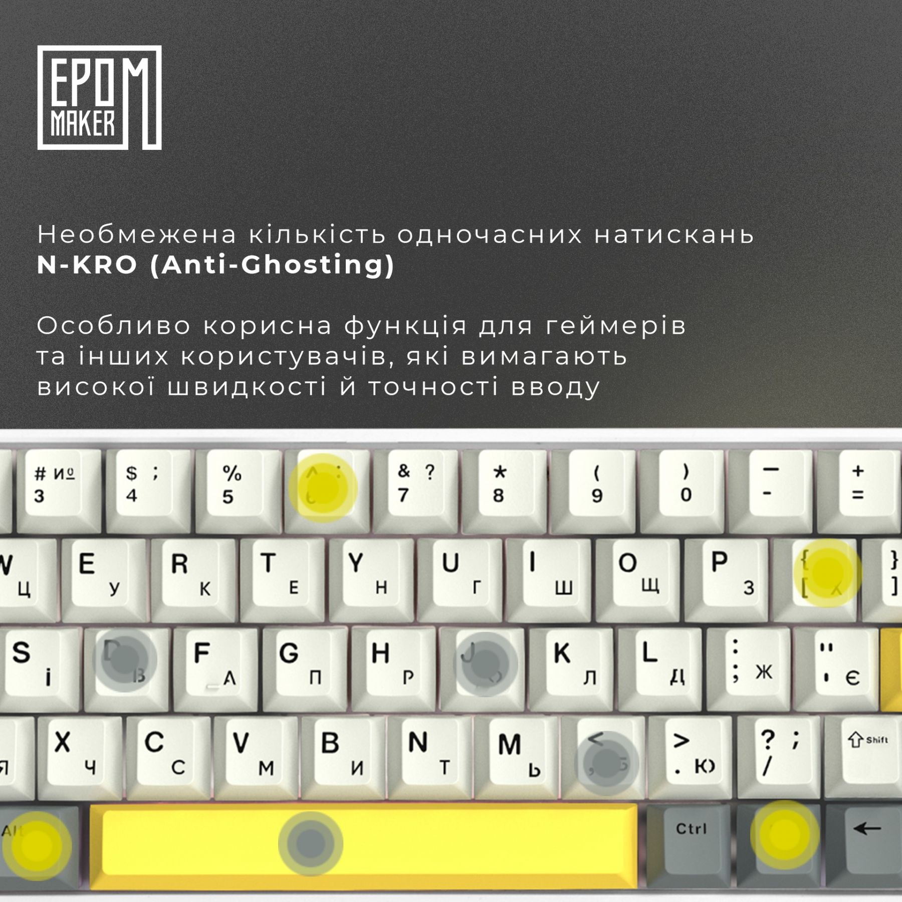 Клавіатура бездротова Epomaker EP64 60% Mulan Switch Hot-Swap (2.4G/BT/USB) RGB UA White (EP64-W-M)