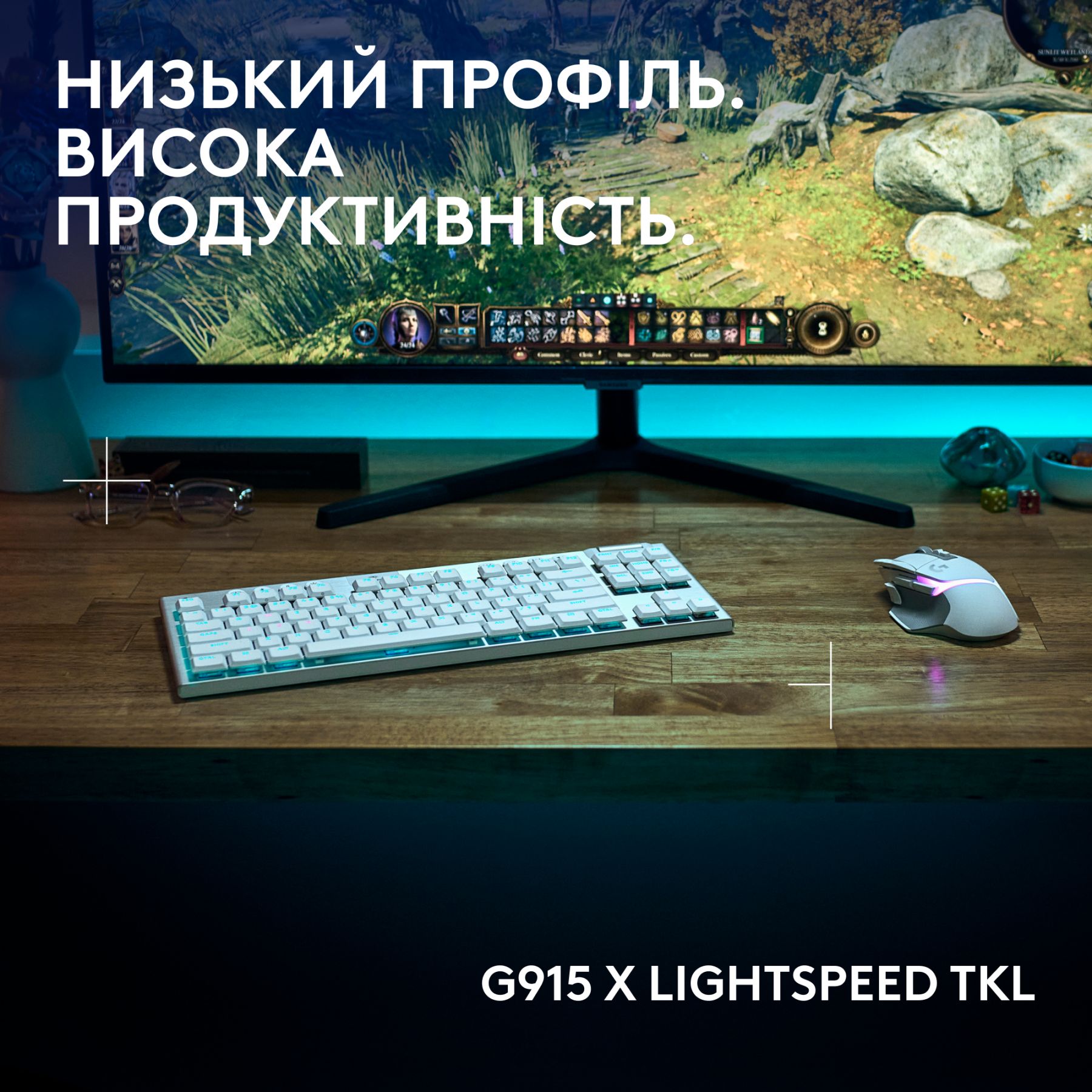 Клавiатура бездротова Logitech G915 X Lightspeed TKL Wireless Tactile White (920-012737)