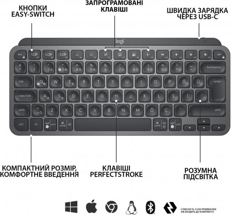 Клавіатура бездротова Logitech MX Keys Mini Wireless Illuminated Graphite (920-010498)