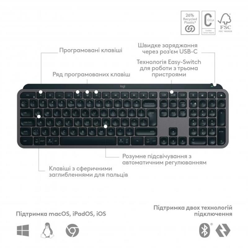 Клавiатура бездротова Logitech MX Keys S Graphite (920-011593)