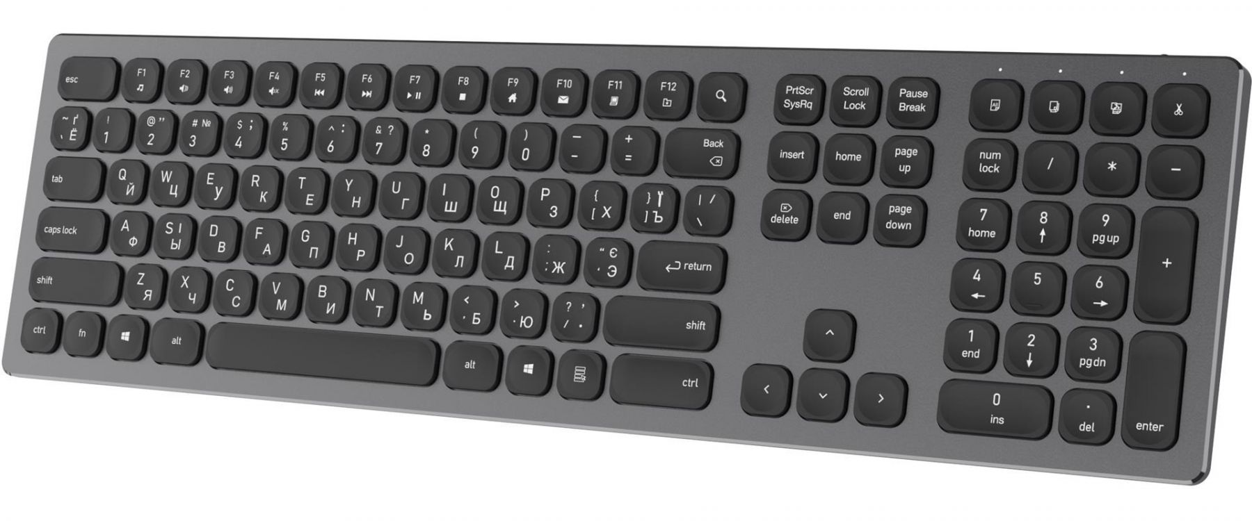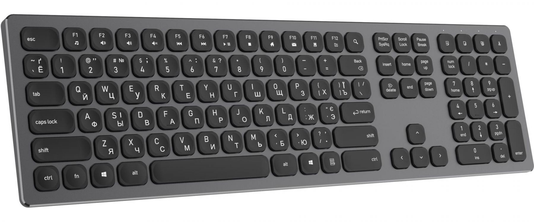 Що стосується дизайну, клавіатура має алюмінієвий корпус, який надає їй міцності та елегантності. Основа клавіатури виготовлена з полікарбонату, а клавіші з ABS-пластику, що забезпечує комфортне та надійне натискання. Комплект включає кабель TYPE-C - USB, що додає зручність при підзарядці. І, звичайно, не можна не відзначити її стильний колір, який надає клавіатурі сучасного вигляду і підходить до будь-якого робочого оточення.