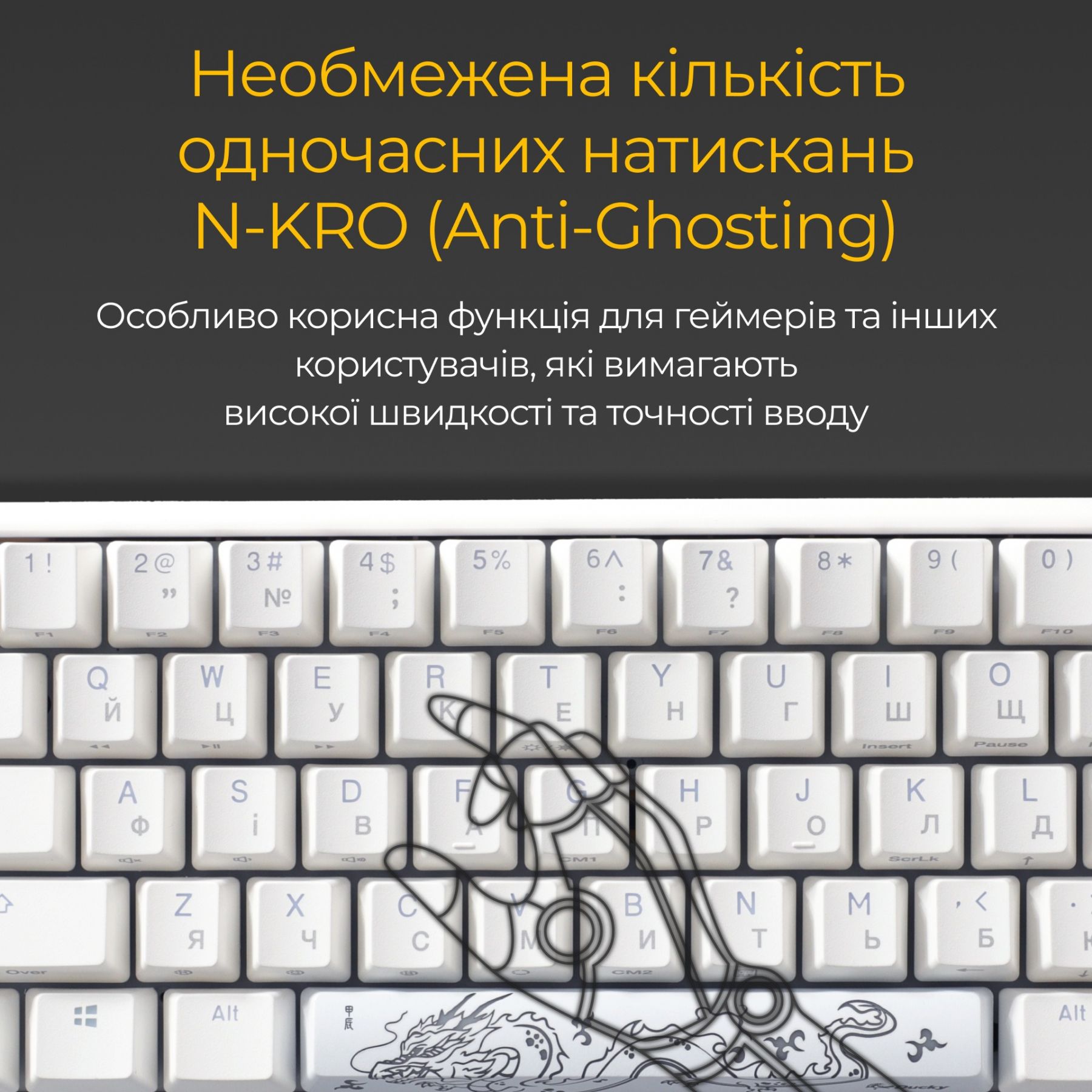 - NKRO технологія: Підтримка No Key Rollover забезпечує точне натискання кожної клавіші, навіть під час одночасного натискання кількох.