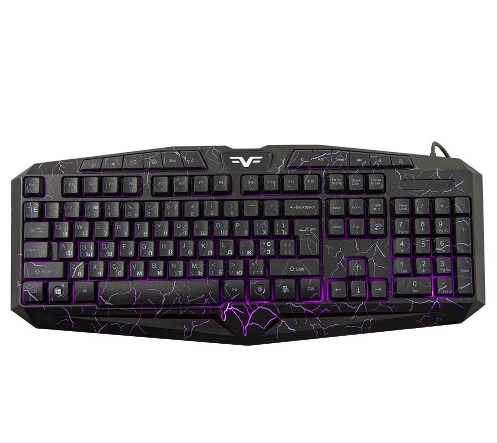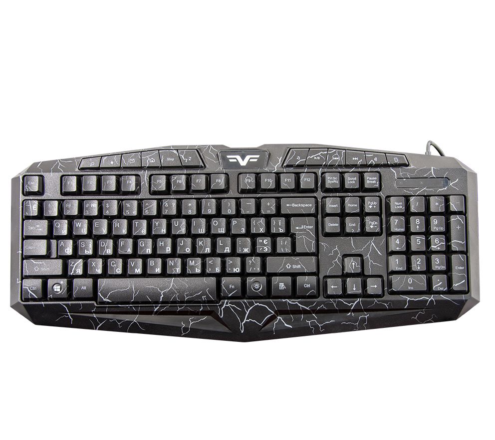 Клавіатура поєднує в собі практичність і привабливий дизайн, в конструкції передбачено 104 кнопки на мембранних перемикачах, які забезпечують ефективне, зручне введення даних, довгий кабель 180 см і Rainbow підсвічування, що полегшить роботу вночі. Модель підтримує три мовні розкладки - англійську, російську та українську.