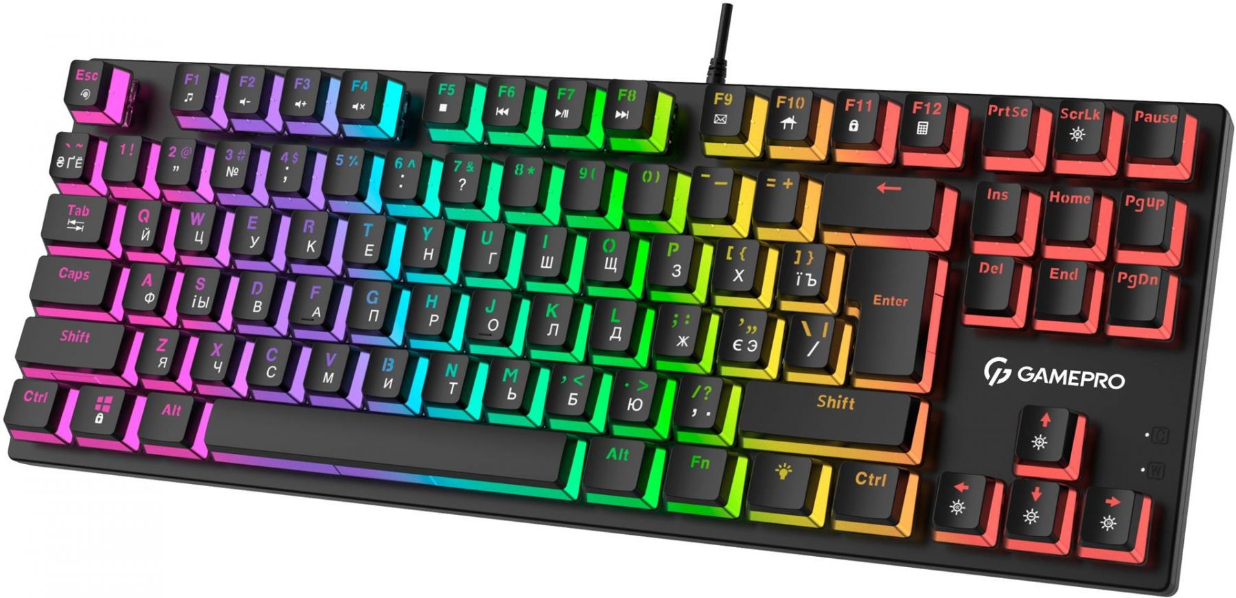 Компактна та зручна механічна клавіатура GamePro MK80B Red Switch RGB, яка перевершить усі ваші очікування. Клавіатура містить 87 клавіш та кнопки з мультимедійними функціями. Завдяки технології Plug and Play ви можете насолоджуватися своєю роботою на клавіатурі, не втрачаючи часу на підключення.