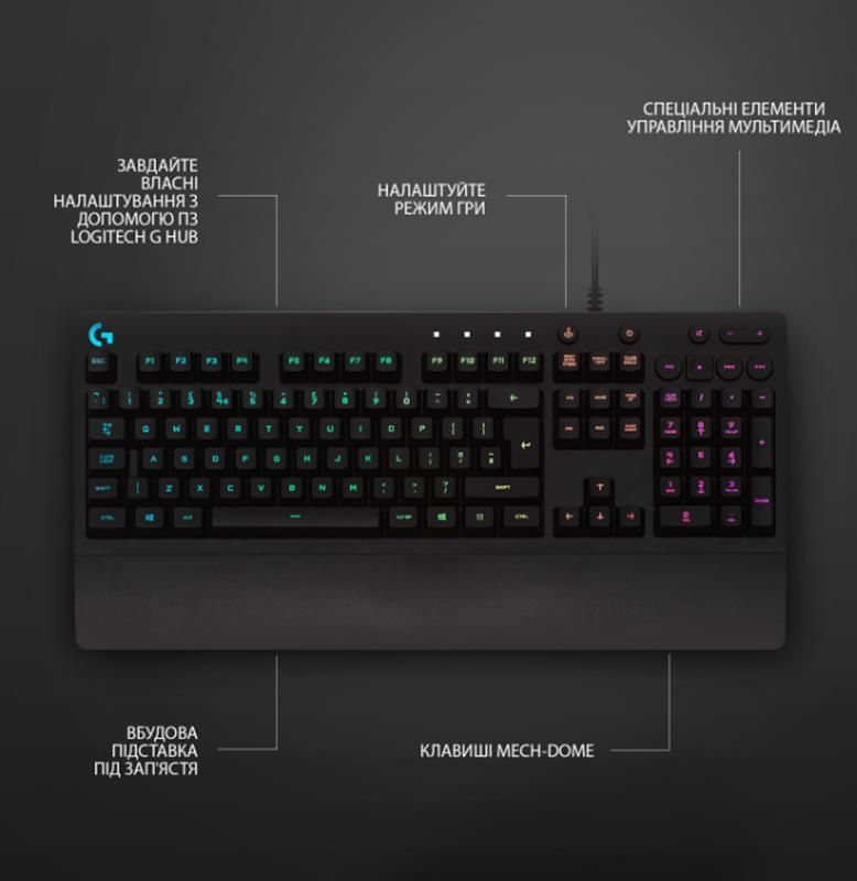 Клавіатура G213 забезпечує можливість вибору п’яти зон індивідуального настроювання кольору з понад 16.8 млн відтінків, а також різних рівнів яскравості, які б відповідали вашому стилю, можливостям системи та розміру приміщення. Технологія Lightsync забезпечує новий рівень якості RGB-підсвітки й дає змогу синхронізувати її з ігровими профілями та вмістом. Всі параметри можна легко та швидко настроювати за допомогою Logitech G HUB.