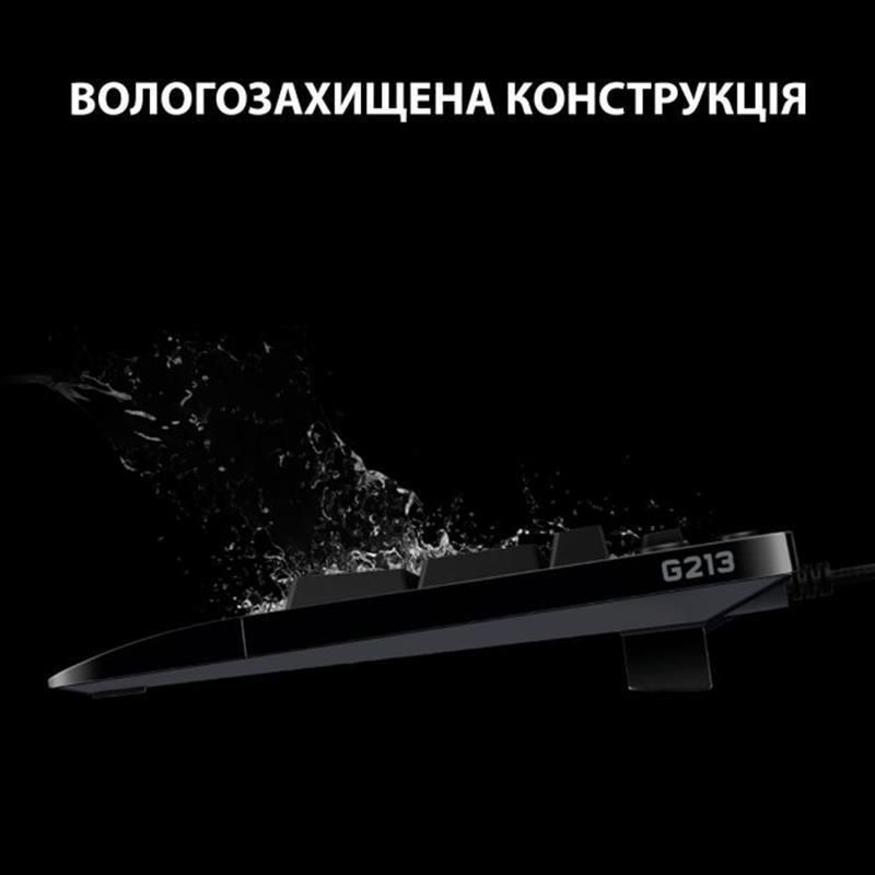 Мембранна конструкція основи G213 забезпечує її вологостійкість (гарантований захист від пролитої рідини об’ємом до 60 мл) та стійкість до можливих пошкоджень. Завдяки цьому цю модель можна активно використовувати в різних умовах. Така клавіатура витримує високі навантаження і слугуватиме довго навіть у разі постійного інтенсивного використання.