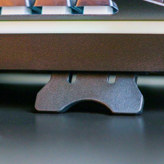 XO KB-01 закохує з першого погляду. Корпус виготовлений з ABS пластику, зовні покритий стильною металевою пластиною. На ній розташовані отвори, які не тільки надають клавіатурі неординарності, але деякі з них можна використовувати для перенесення клавіатури, а також для встановлення смартфона, щоб вести стрими. Клавіші високі, легко натискаються, мають форму, що плаває. Загальна кількість 104, в т.ч. поєднання гарячих кнопок – 18.