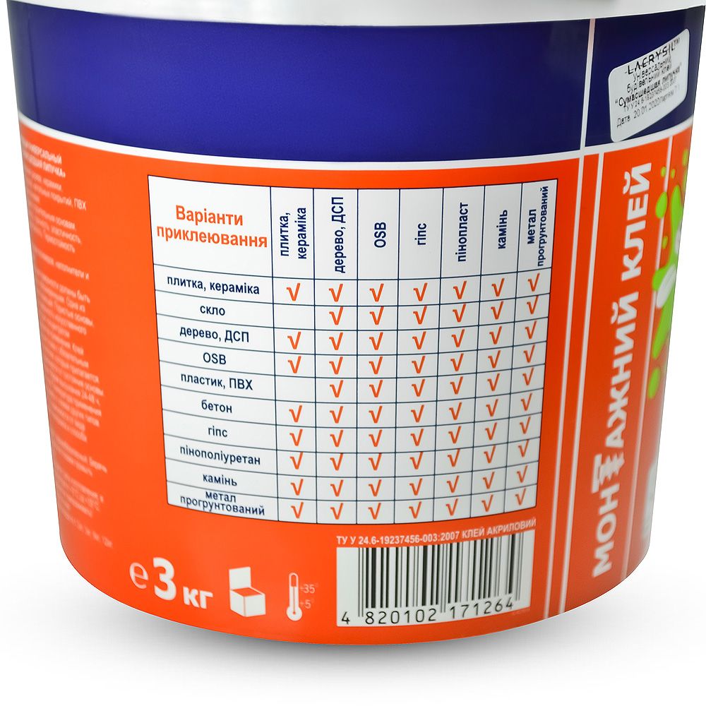 Клей монтажний акриловий Lacrysil "Сумасшедшая липучка", 3 кг, білий (171264)