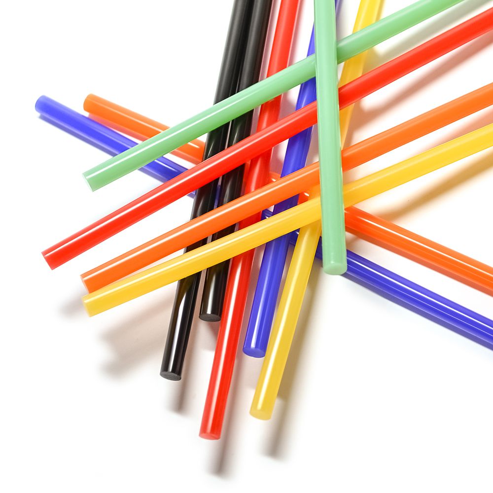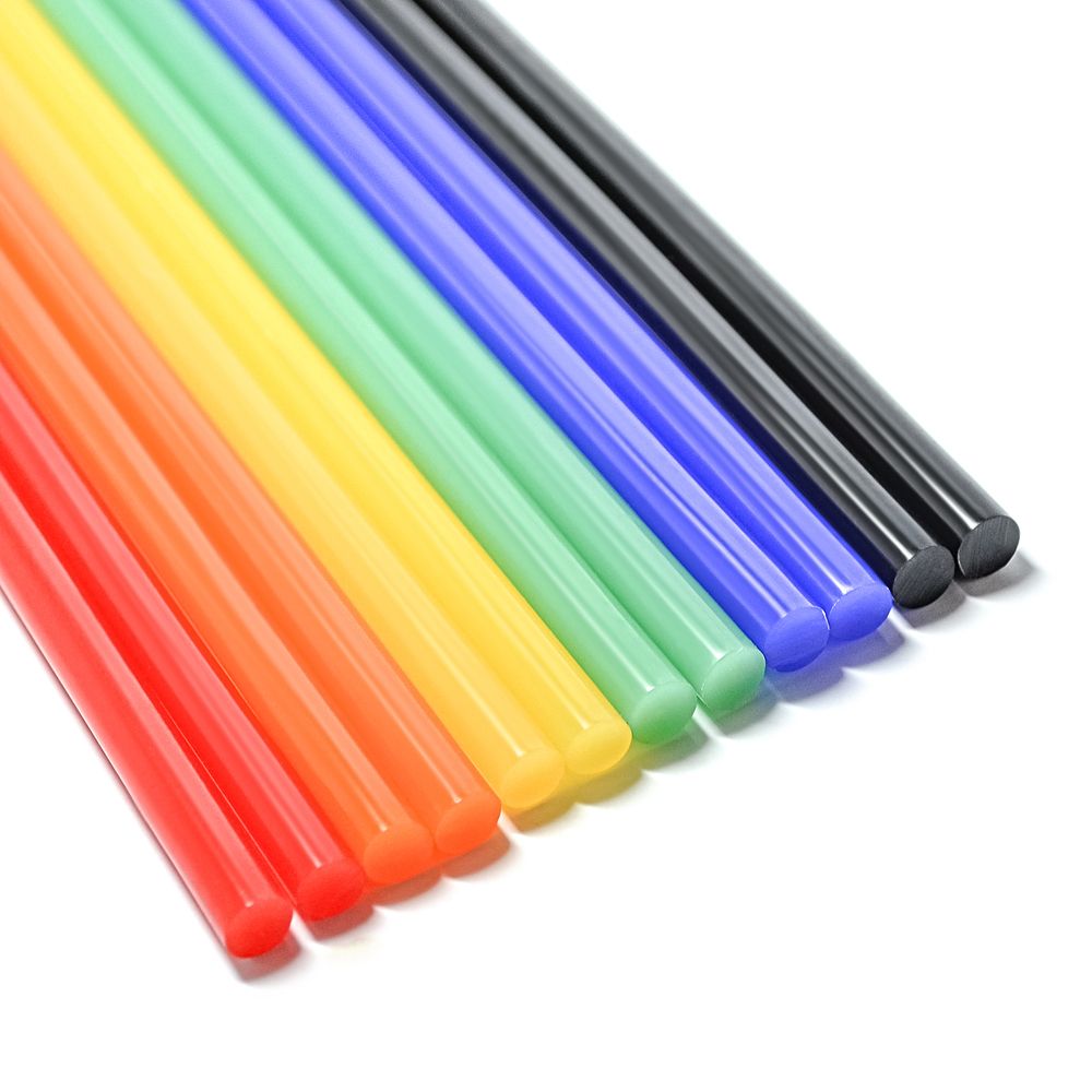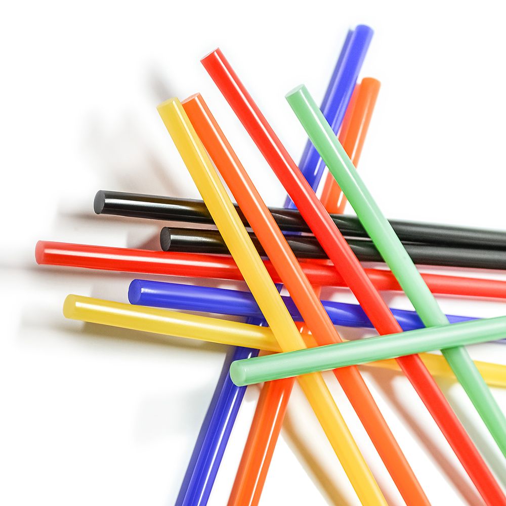 Стрижні застосовуються для склеювання будь-яких матеріалів: текстиль, пластик, дерево, кераміка, шкіра, картон та ін.