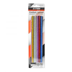 Клейові стрижні Stark 7,2*200 мм, 12 шт, кольорові з блискітками (525072012)