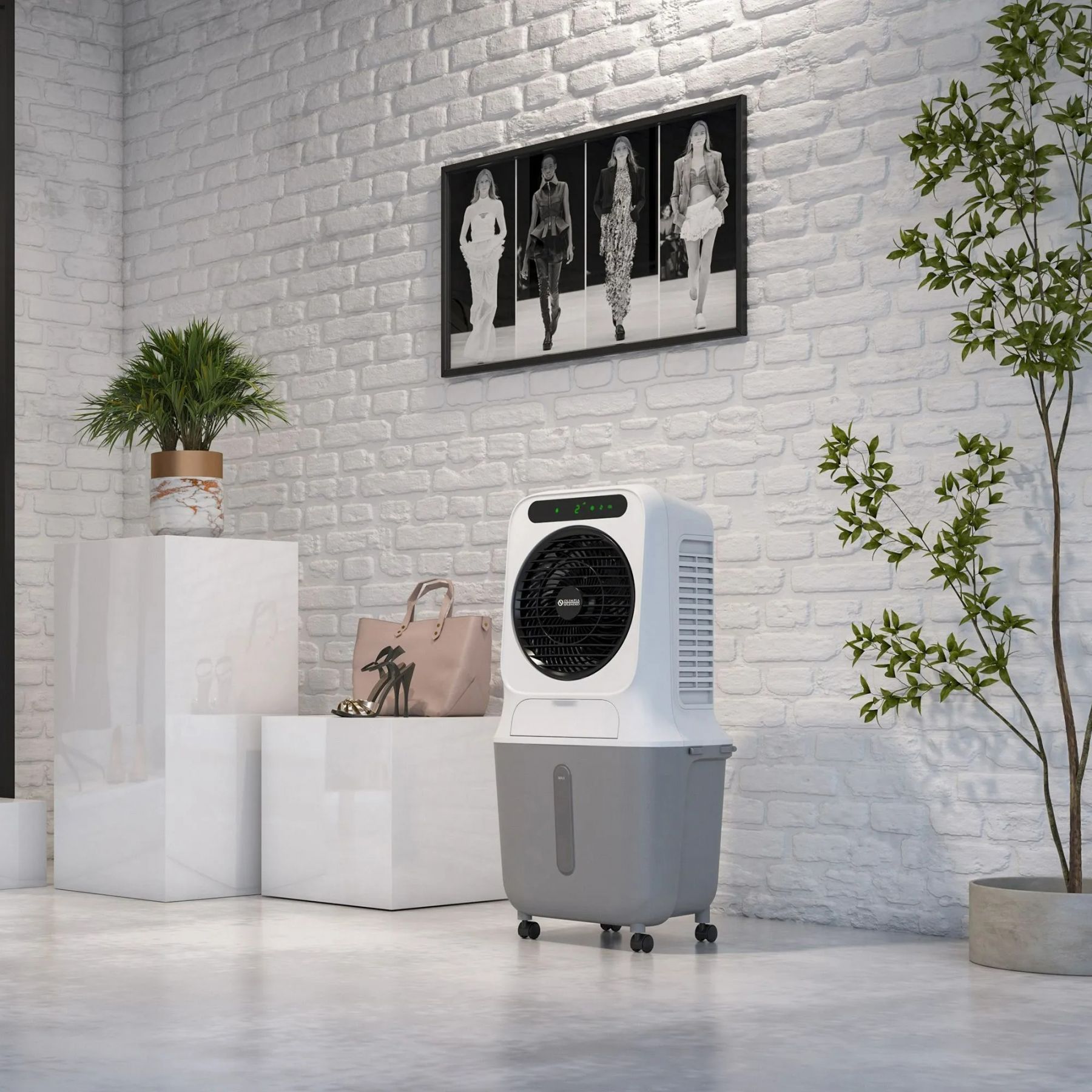 Випарний охолоджувач не є кондиціонером. Його ефективність найкраще проявляється у жаркому та сухому кліматі. У вологих умовах він не так ефективно охолоджує повітря, а лише підвищує вологість, що може викликати відчуття "липкості". Це чудовий вибір для тих, хто шукає енергоефективну альтернативу звичайним кондиціонерам, особливо для використання в сухих регіонах.