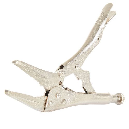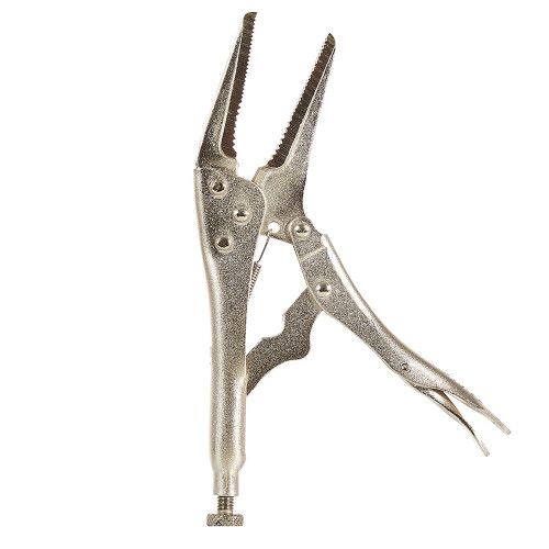 Кліщі затискні INGCO HLNP0209 призначені для професійних слюсарно-монтажних робіт, де потрібен міцний надійний захват і затиск деталей. Забезпечені двома ручками — рухомою та нерухомою. Виготовлені з вуглецевої сталі, мають нікелеве покриття. Твердість затискних поверхонь 38–48 HRC. Довжина інструмента 230 мм.