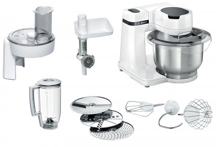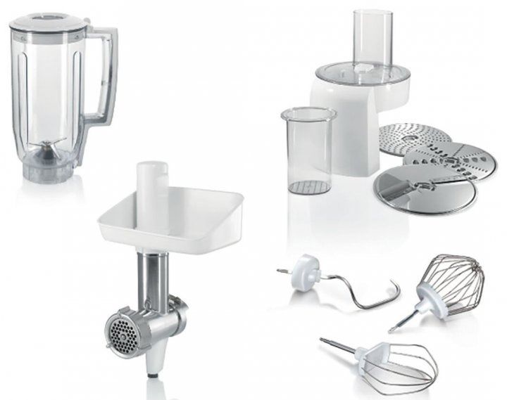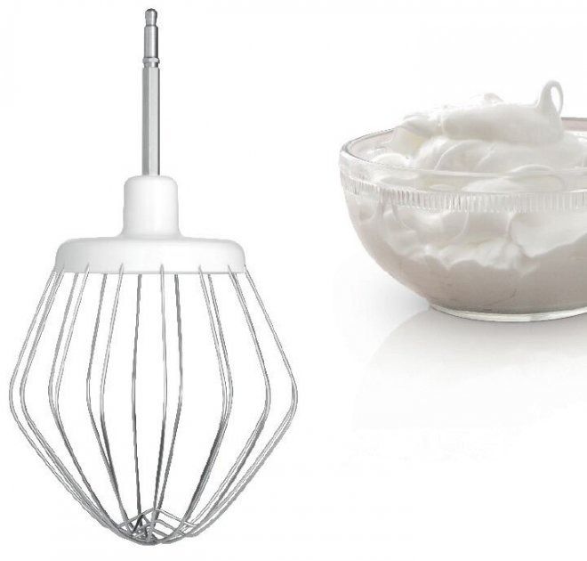 Набір для приготування кондитерських виробів з вінчиком, насадкою для перемішування та гаком для замішування тіста підходить для широкого спектру використання. За допомогою цих аксесуарів ви можете легко приготувати безе, тістечка або ж замішати тісто на хліб або спагеті. Усі ці аксесуари придатні для миття у посудомийній машині.