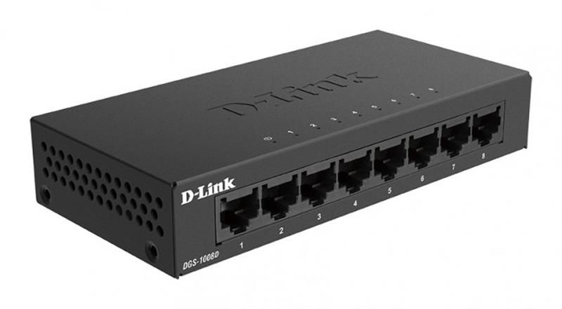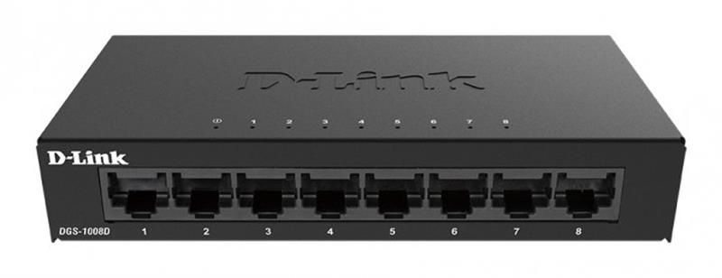Некерований комутатор DGS-1008D з 8 портами 10/100/1000Base-T є недорогим рішенням для мереж SOHO і підприємств малого та середнього бізнесу (SMB). Комутатор підтримує функцію Plug-and-play, яка забезпечує просту установку та надає широку смугу пропускання.