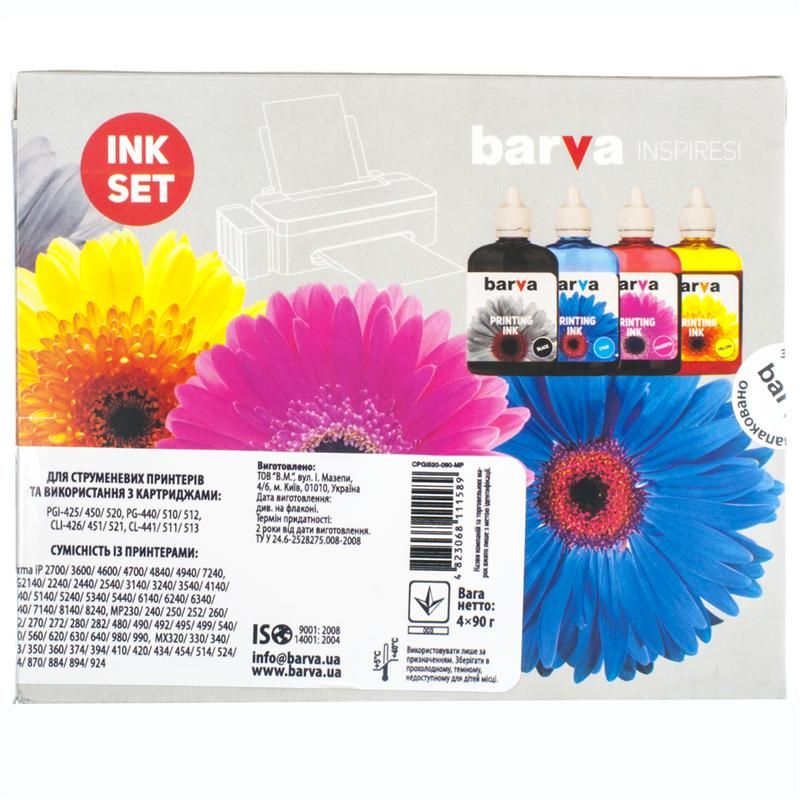 Комплект чорнил Barva Canon PGI-520 BL + CLI-521 C/M/Y (MG2140/MP230/MP280) (CPGI520-090-MP) 4х90 г