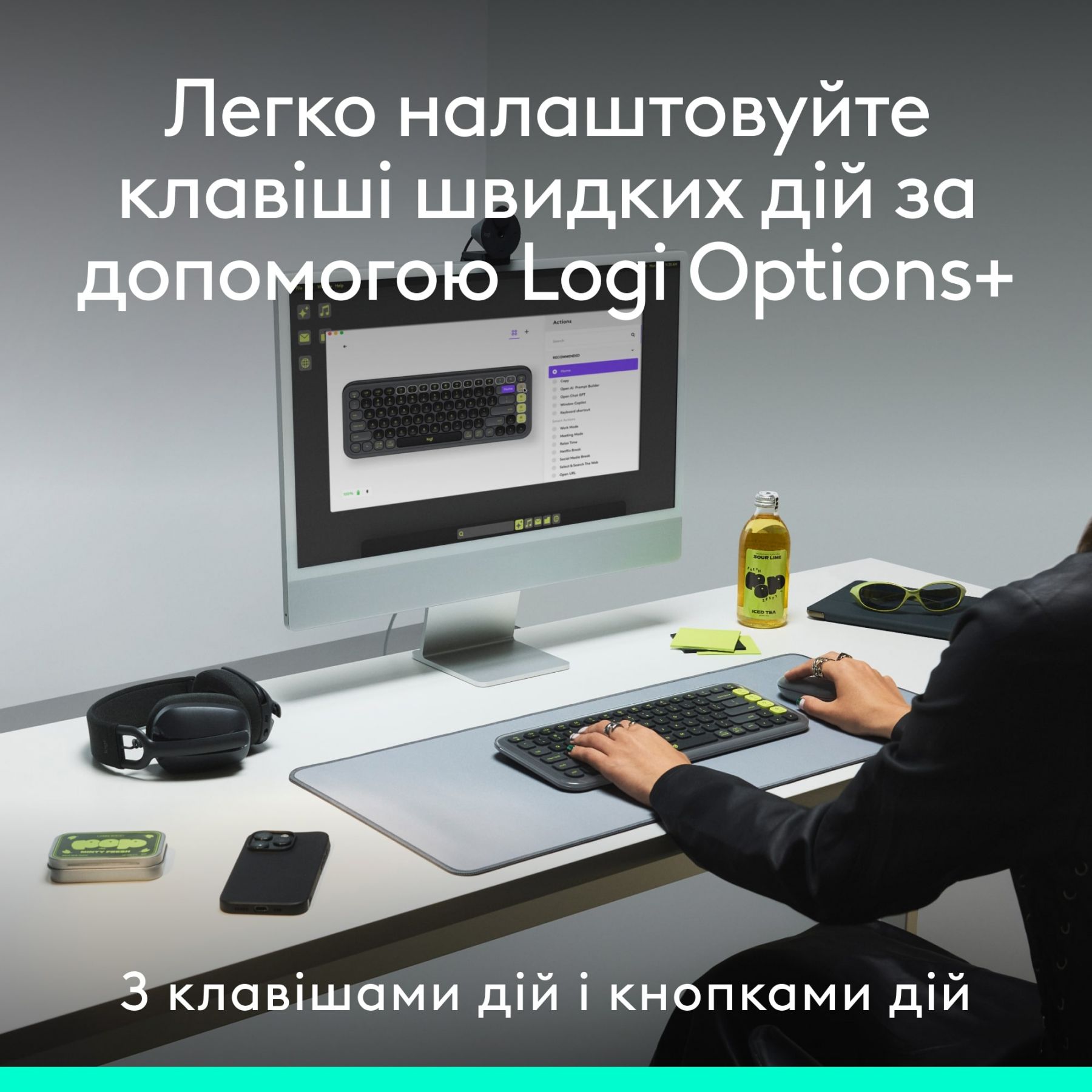 Logitech POP ICON COMBO, комплект із Bluetooth-клавіатури та миші, зручне введення тексту, програмовані клавіші та кнопки, безшумні натискання, підтримка функції Easy-Switch для 3 пристроїв.
