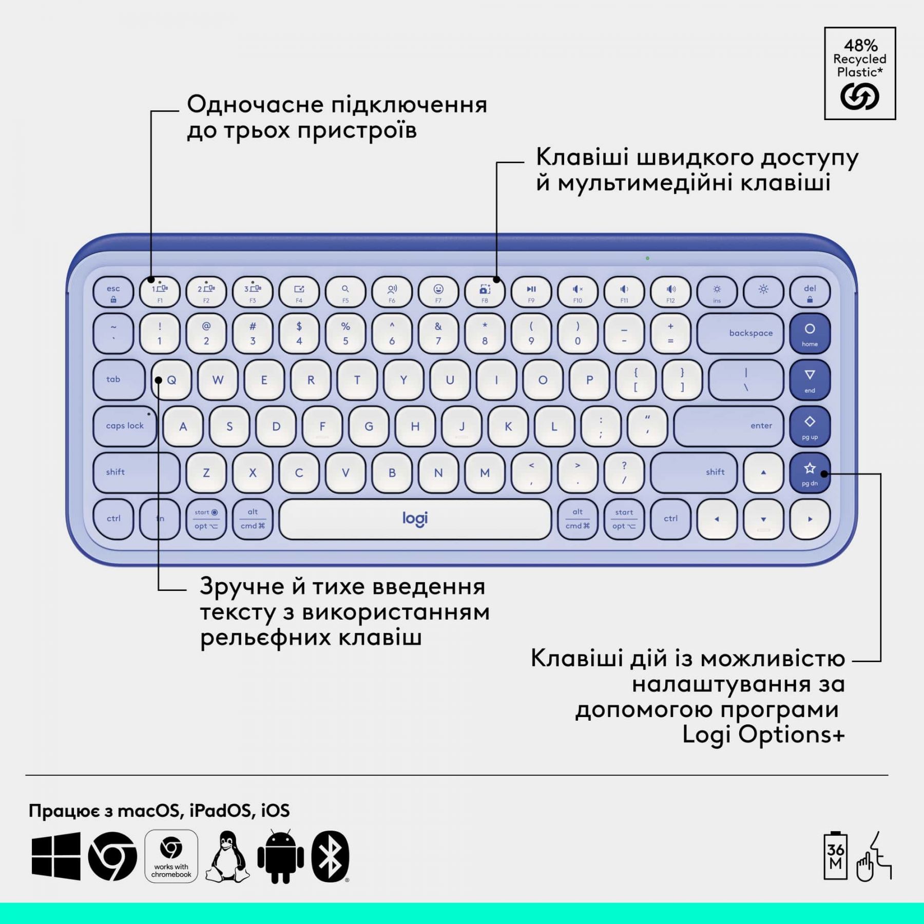Комплект (клавіатура, миша) бездротовий Logitech Pop Icon Combo Lilac (920-013078)