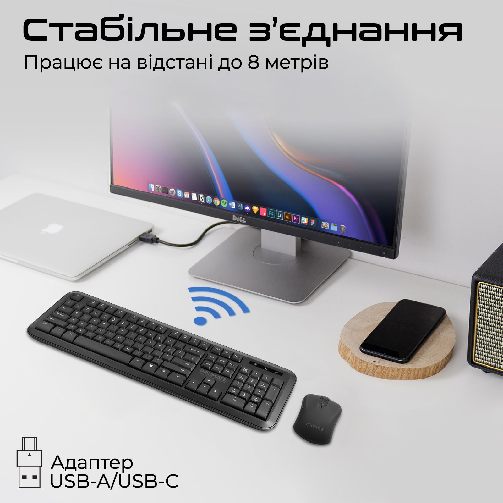 Комплект (клавіатура, миша) бездротовий Promate ProCombo-6 Black