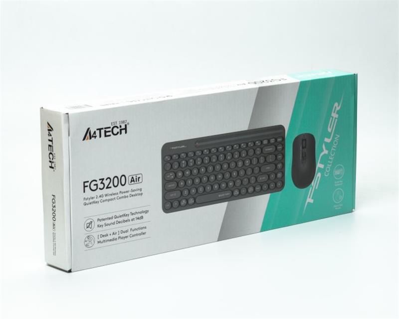 Комплект (клавіатура, мишка) бездротовий A4Tech Fstyler FG3200 Air Grey