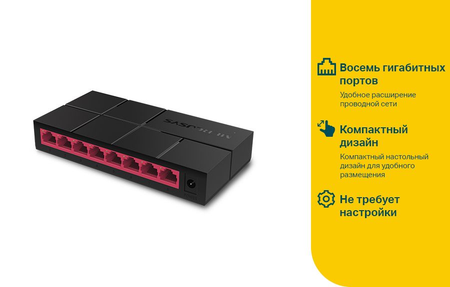 Розширте дротову мережу завдяки 8 портів Ethernet 10/100/1000 Мбіт/с! MS108G сумісний з 4K Ultra HD ТV, комп’ютерами, принтерами, IP-камерами, ігровими консолями та іншими пристроями. Комутатор відмінно підійде для будинку і невеликого офісу.
