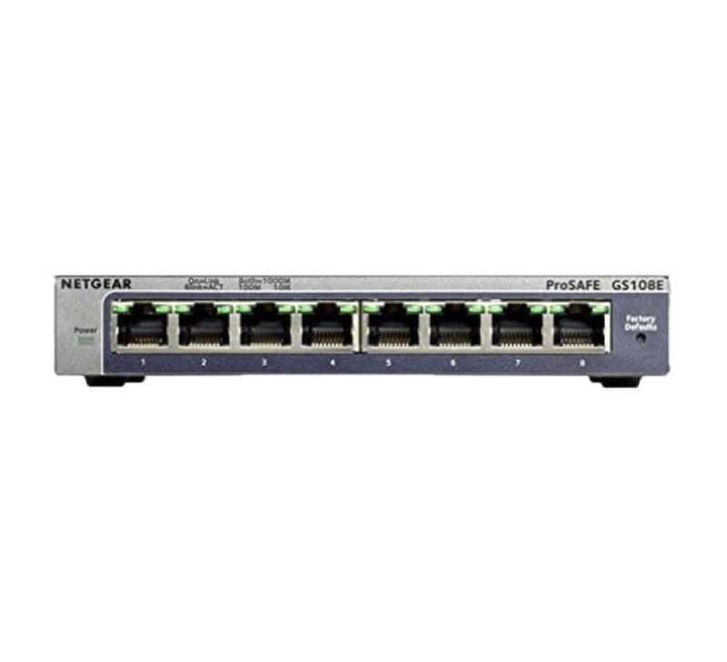 Комутатор NETGEAR ProSafe GS108E не вимагає адміністрування та готовий до роботи відразу після підключення до мережі. Захист від DoS-атак вбудований на рівні процесора. Матриця самостійно перевіряє наявність петель у маршрутизації та стежить за контролем широкомовних штормів. Для мультикастингу використовується IGMP-снупінг. Реалізовано також обробку Jumbo-фреймів.