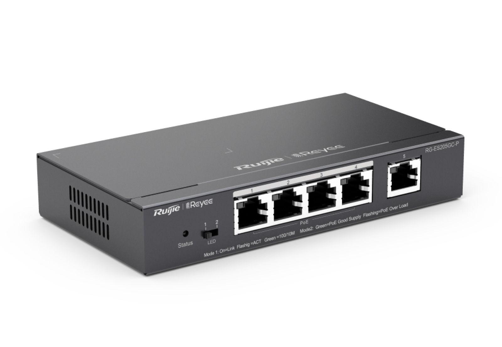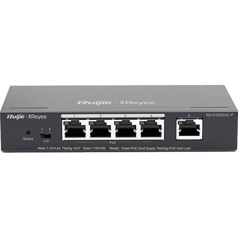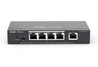 Ruijie Reyee RG-ES205GC-P – це 5-ти портовий гігабітний керований комутатор з 4 портами PoE+, розроблений для злагодженої роботи систем відеонагляду.
