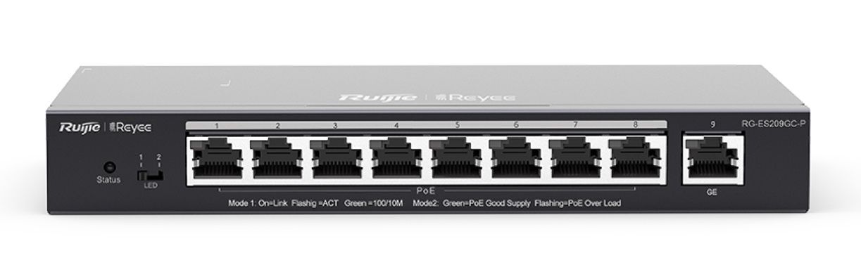 Ruijie Reyee RG-ES209GC-P – це 9-ти портовий гігабітний керований комутатор з 8-ма портами PoE+, розроблений для злагодженої роботи систем відеонагляду.