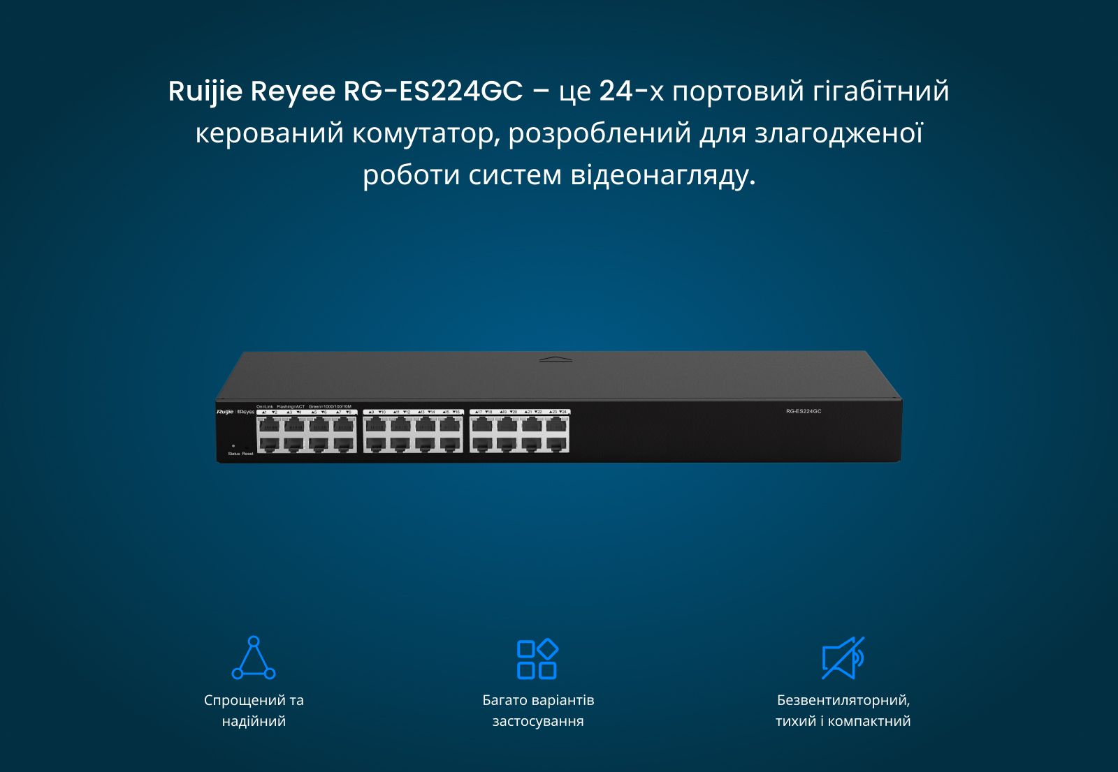 Ruijie Reyee RG-ES224GC – це 24-ти портовий гігабітний керований комутатор, розроблений для злагодженої роботи систем відеонагляду.