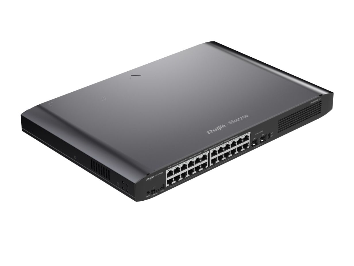 Ruijie Reyee RG-ES226GC-P – це 26-ти портовий гігабітний керований комутатор з 24-ма портами PoE+, розроблений для злагодженої роботи систем відеонагляду.