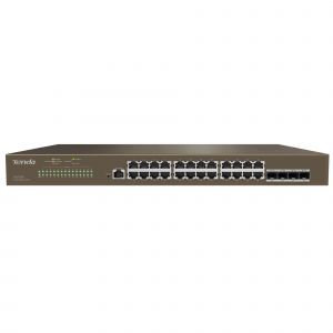 TEG5328F - керований комутатор Tenda третього рівня. Для забезпечення високопродуктивного доступу комутатор оснащений 24 портами Base-T Ethernet 10/100/1000 Мбіт/с та 4 окремими портами Base-X SFP 1000 Мбіт/с. Завдяки інноваційній апаратній структурі та програмній платформі, він має високу обчислювальну потужність та комплексний механізм захисту, що спрощує управління та обслуговування, повністю задовольняючи вимогам до доступу з високою щільністю користувачів та високопродуктивної агрегації. Ідеально підходить для рівня агрегації або рівня ядра мереж середнього та великого розміру, таких як корпоративні мережі та кампуси.