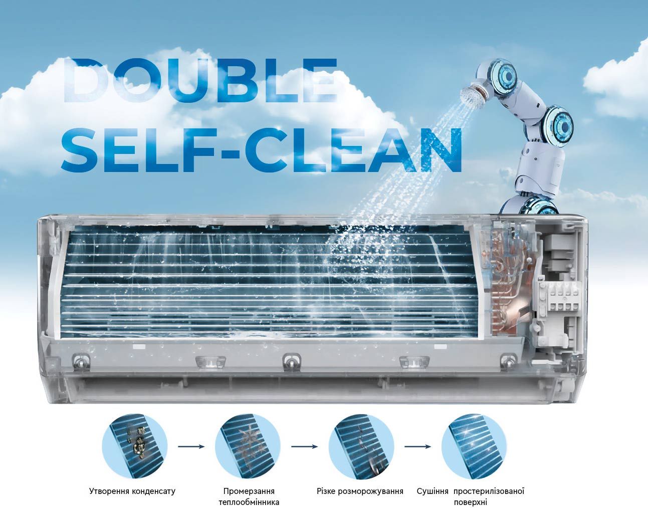 Інноваційна технологія DOUBLE SELF-CLEAN дозволяє кондиціонеру здійснювати самоочищення від пилу, грибків, вірусів та бактерій.