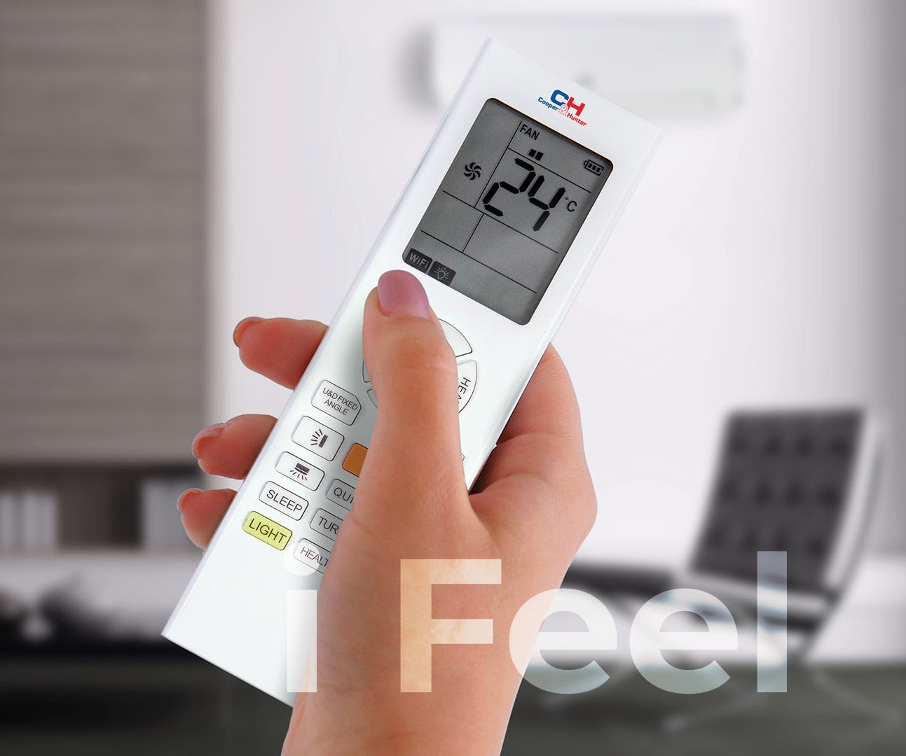 Slide 7 для зручнішого керування кліматом, кондиціонер оснащений функцією I FEEL. Вбудований сенсор I FEEL у пульті кондиціонера визначає температуру на рівні людини, забезпечуючи комфорт у зоні перебування людини, а не на рівні внутрішнього блоку, як визначають стандартні датчики температури.