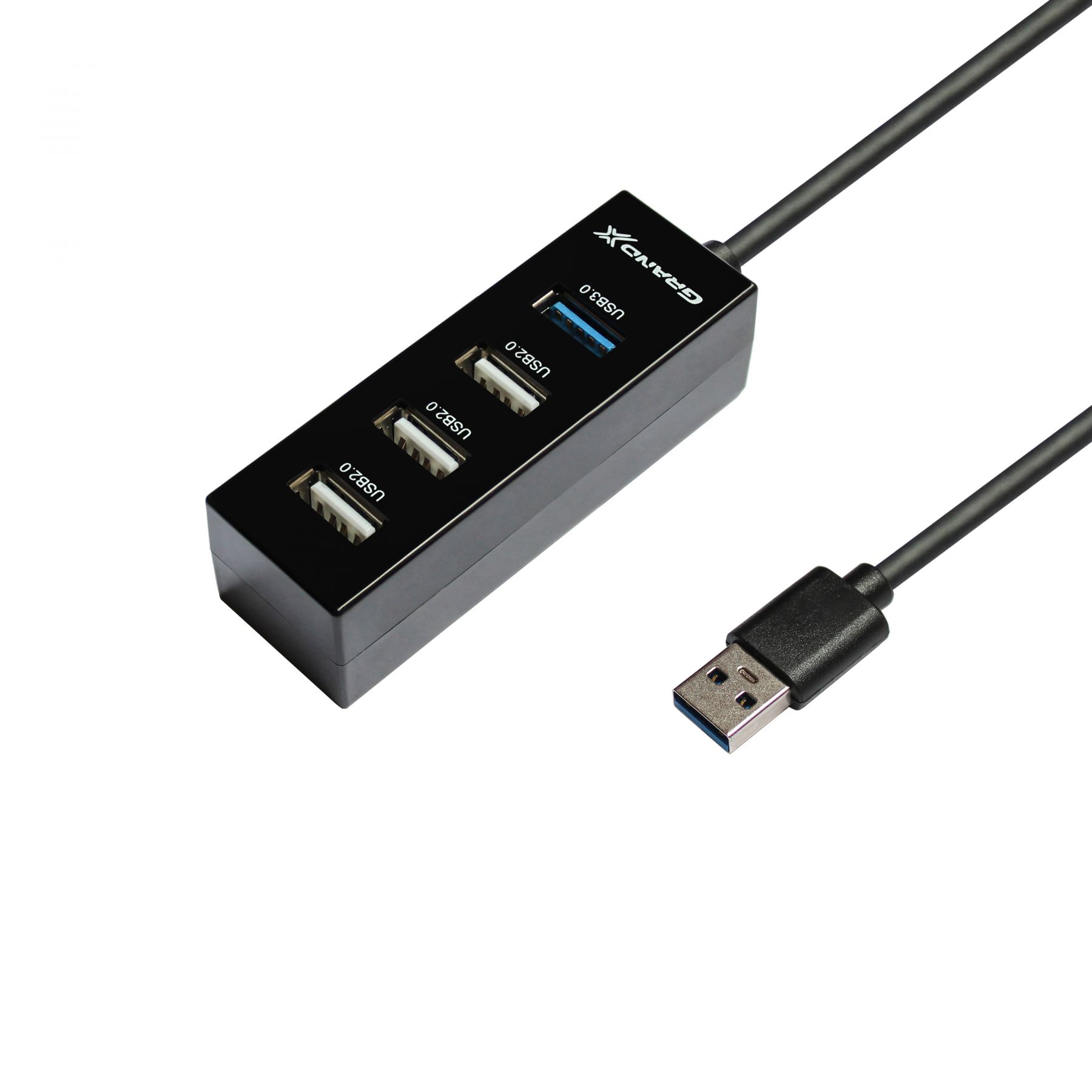 Концентратор Grand-X Travel GH-409, 1хUSB3.0+3хUSB2.0, Black