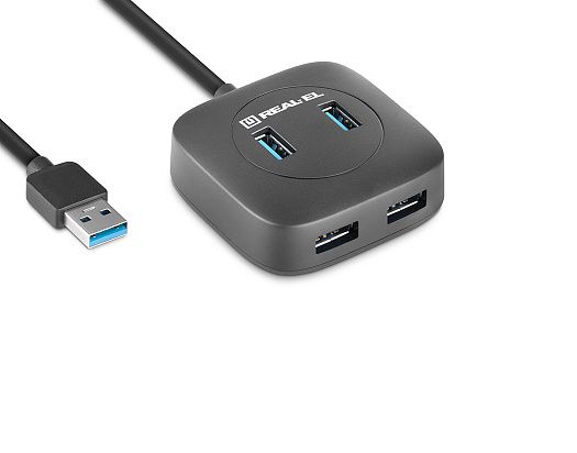 REAL-EL HQ-187 USB 3.0 HUB призначений для розширення та множення портів USB з можливістю використання всіх із них одночасно. Може використовуватися з усіма типами док-пристроїв, які можна підключити через порт USB-A.