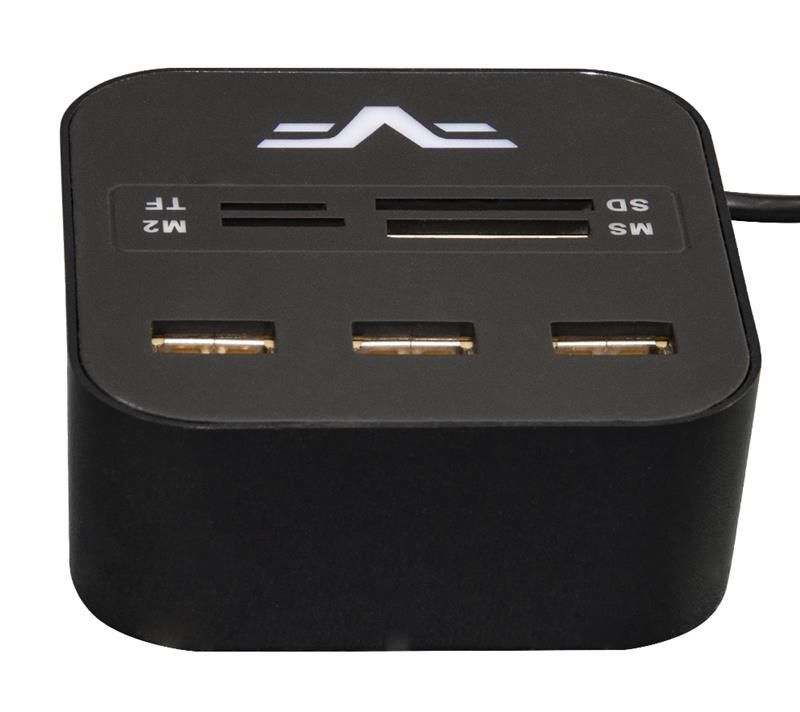Концентратор USB 2.0 Frime 3хUSB2.0, SD, MS, TF Black (FHC-AllinOne3p2B)