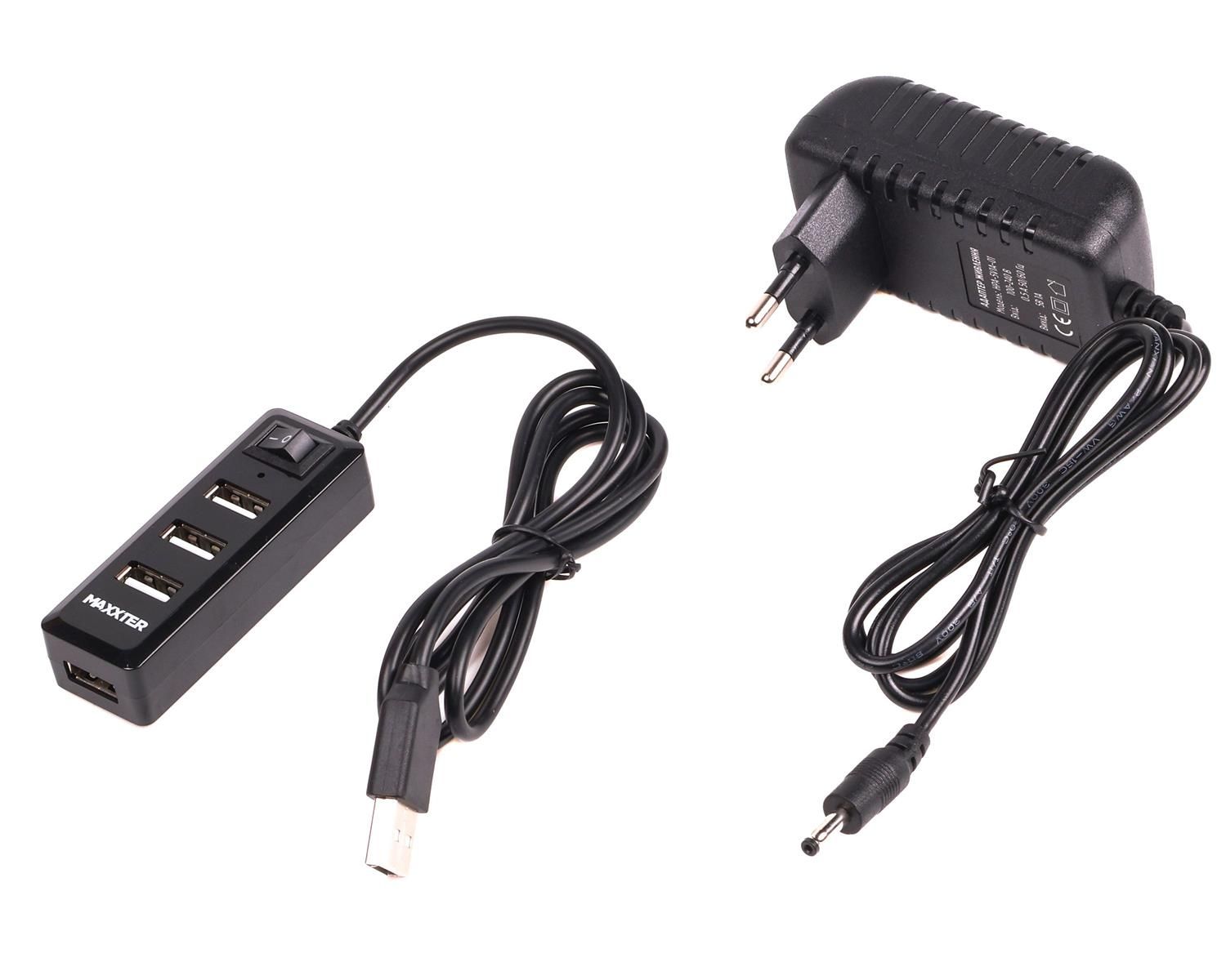 Концентратор USB 2.0 Maxxter 4хUSB2.0 Black (HU2A-4P-AC-03)