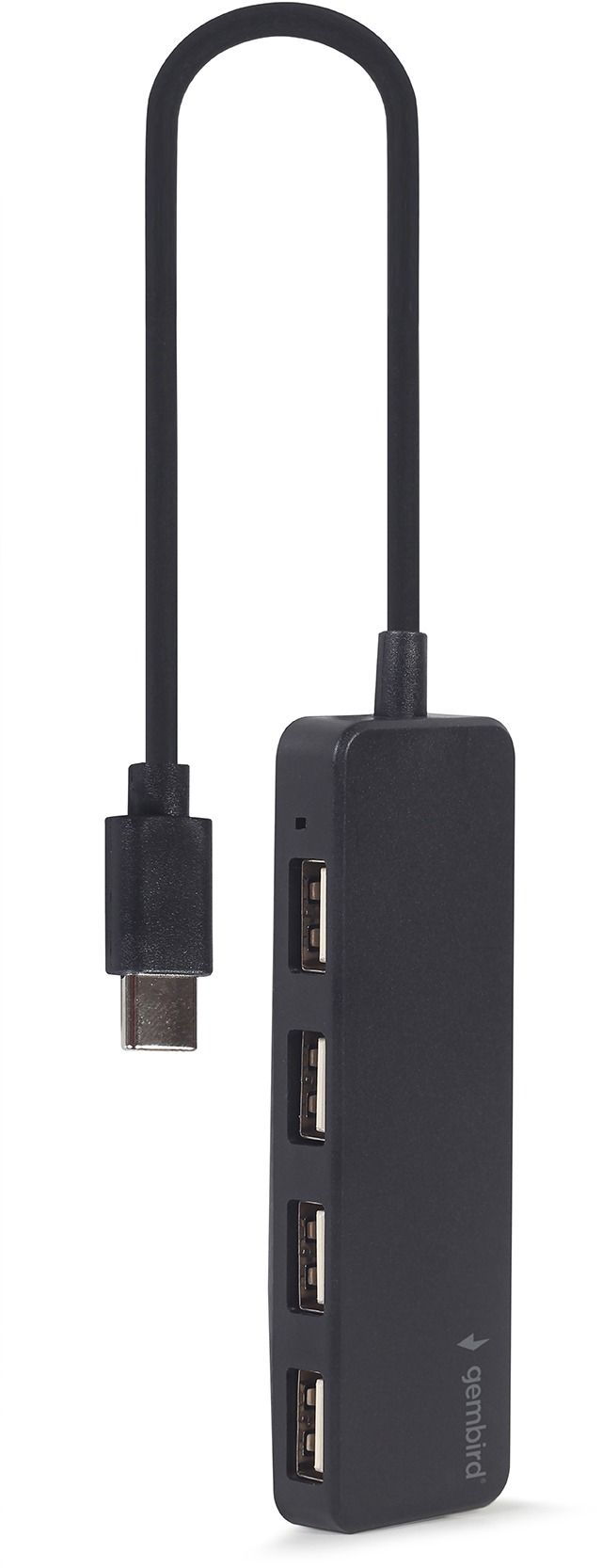 Концентратор USB Type-C Gembird 4хUSB2.0, пластик, Black (UHB-CM-U2P4-01)