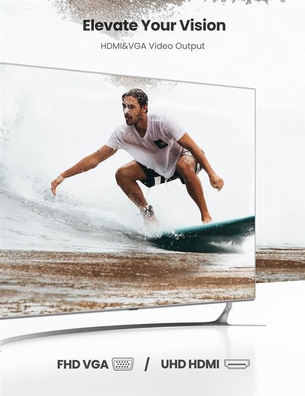 Вона має два інтерфейси для передачі відео. З портом HDMI ви можете відтворити зображення з розділовою здатністю 4Kх2К при частоті 30 Гц UHD. Використовуйте док-станцію на бізнес-конференціях та підключайте ноутбук до проектора через інтерфейс VGA. При одночасній роботі двох відеопортів зображення на моніторах буде продубльоване з розділовою здатністю 1080р.