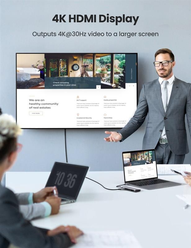 Вона має два інтерфейси для передачі відео. З портом HDMI ви можете відтворити зображення з розділовою здатністю 4K UHD. Використовуйте док-станцію на бізнес-конференціях та підключайте ноутбук до проектора через інтерфейс VGA.