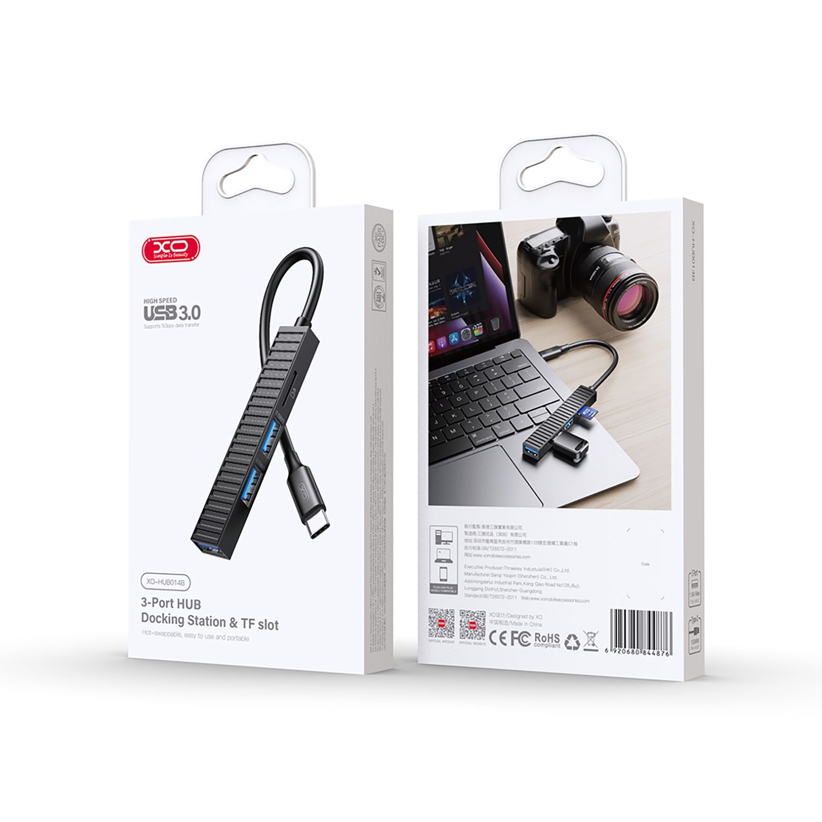 USB-C хаб 4-в-1 ХО HUB014B USB 3.0/2хUSB 2.0/SD/MicroSD Black (HUB014B.black)
