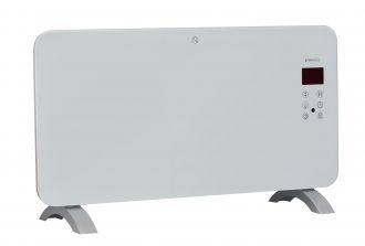 Передня панель виготовлена із загартованого скла, обігрівач оснащений сенсорним цифровим терморегулятором із рідкокристалічним дисплеєм.