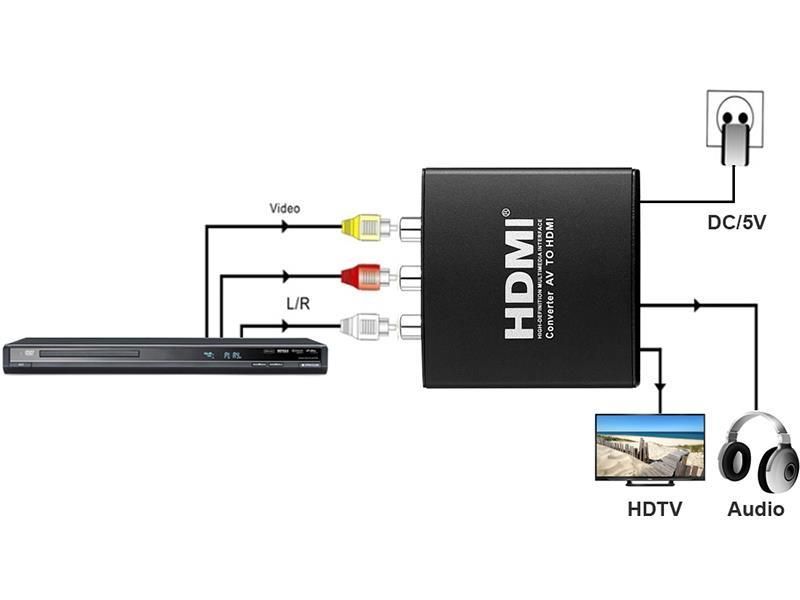 На основі 3D цифрового, перетворювач AV - HDMI може конвертувати сигнал формату 480I (NTSC)/576I (PAL) в сигнал HDMI 720P/1080P і застосовуватися до DVD, телевізійної приставки, HD-програвача і т.д.
