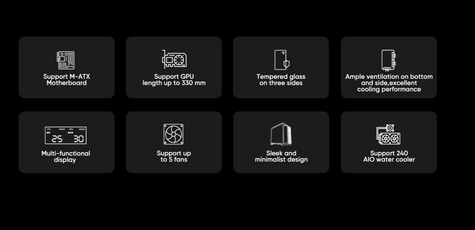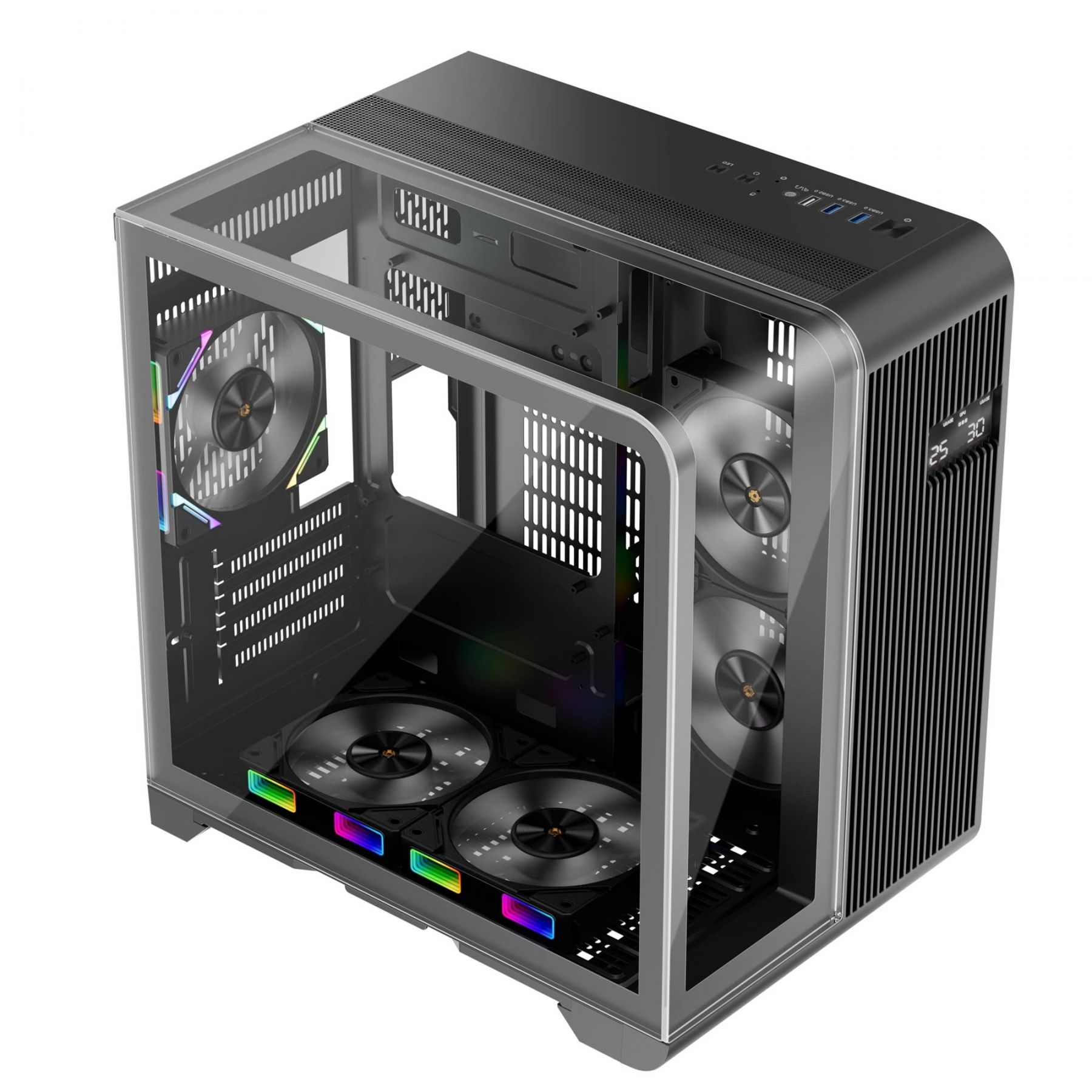 U-подібна конструкція із загартованого скла спереду та зверху, що підкреслює бездоганну естетику вашого складання. Вишуканий зовнішній вигляд у поєднанні з обладнанням та підсвічуванням ARGB забезпечує вражаючий візуальний ефект!