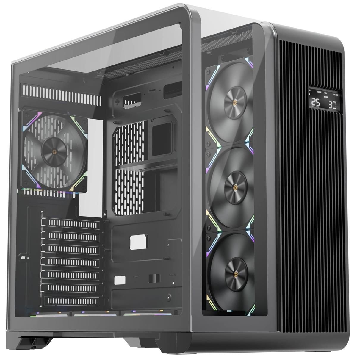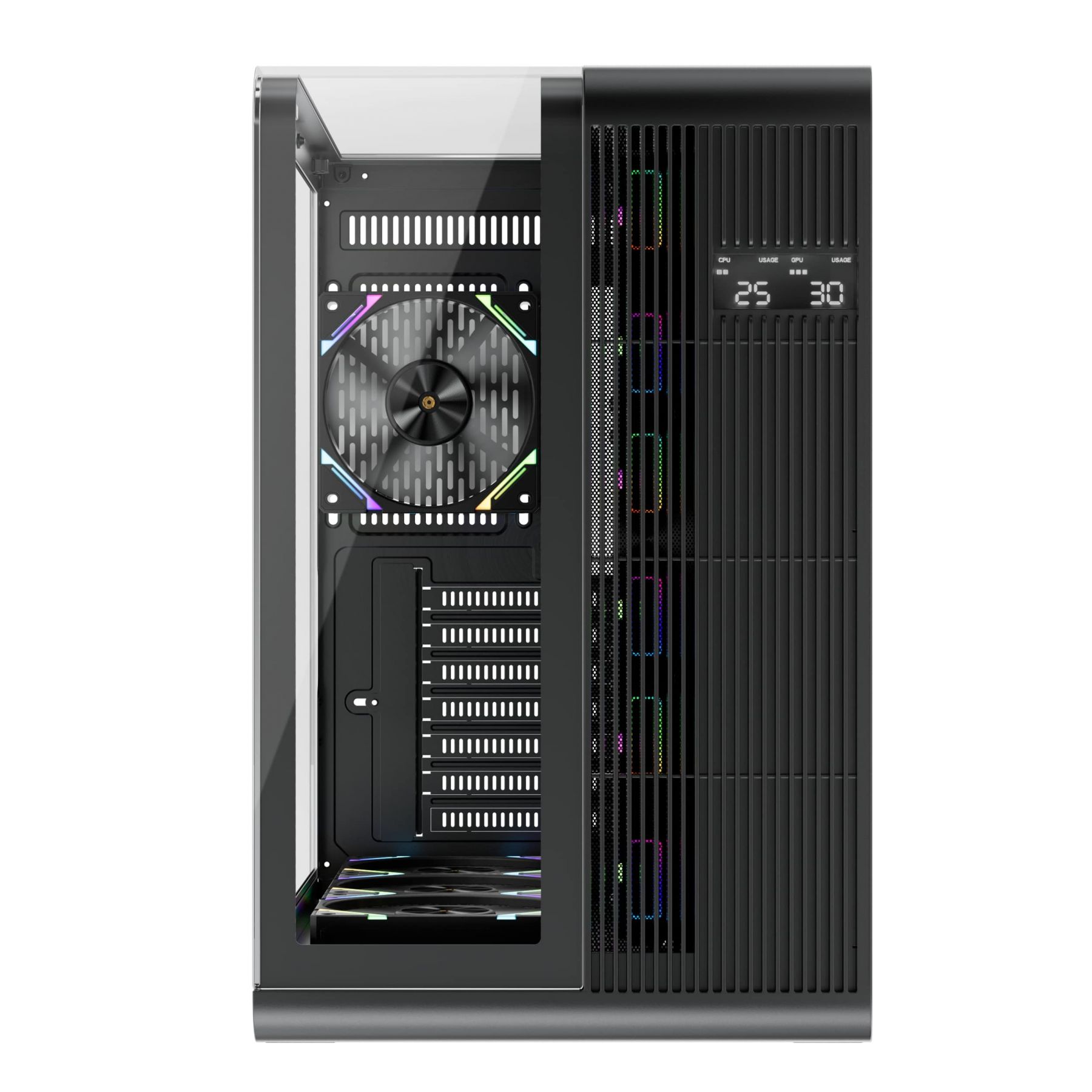 Завдяки гладкому, футуристичному багатофункціональному дисплею на передній металевій панелі, ви отримаєте доступ в режимі реального часу до життєво важливих показників вашої установки. Контролюйте завантаження ЦП, використання пам’яті, температуру та частоту одним поглядом.