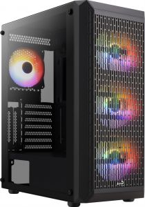 Цей високопродуктивний корпус формату Mid-Tower створений з урахуванням вентиляції та надає якісний повітряний потік, поки ви насолоджуєтеся підсвічуванням вентиляторів на передній панелі. Бічна панель із загартованого скла дозволяє розглянути всі компоненти системи. Два додаткові слоти розширення дають можливість встановлення відеокарти у вертикальному положенні.