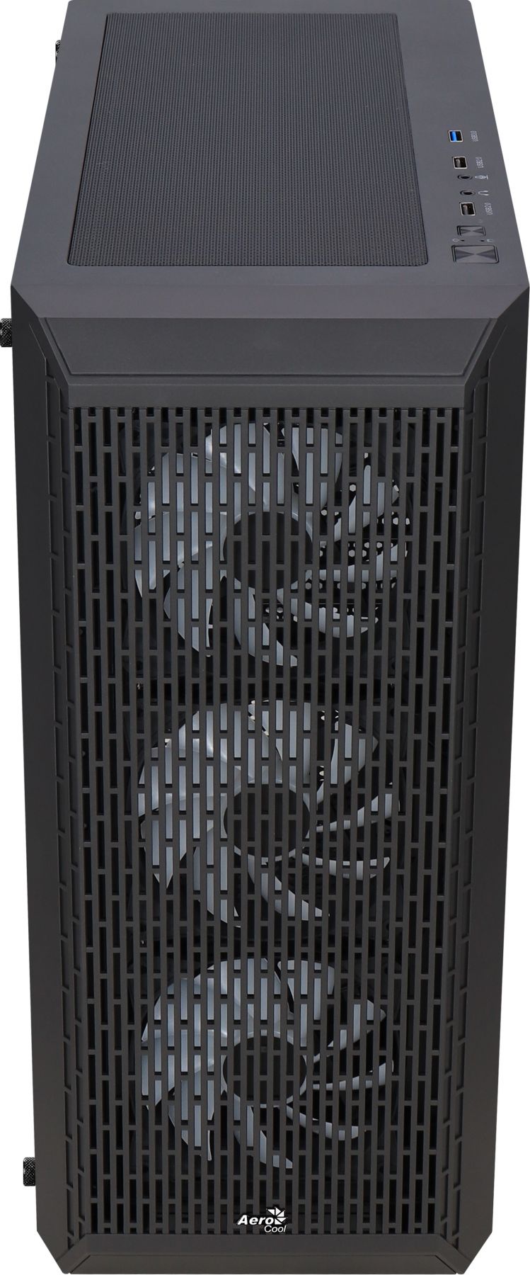 Вишуканий дизайн передньої панелі з вентиляційними отворами збільшують потік повітря та покращують вентиляцію, забезпечуючи можливість бачити передні вентилятори з підсвічуванням.