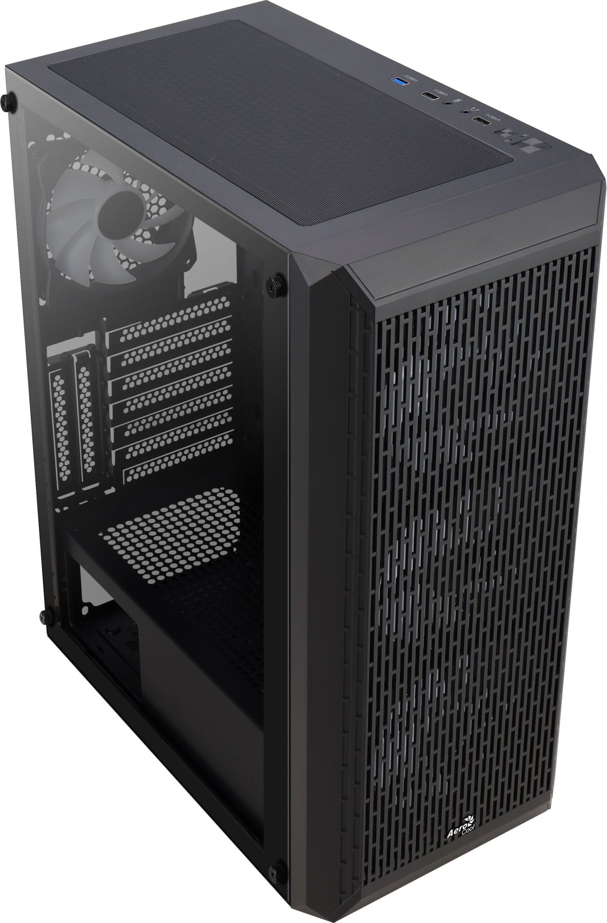 Поставляється з бічною панеллю із загартованого скла, дозволяючи розглянути всі компоненти системи та виставити комп'ютер на увазі.