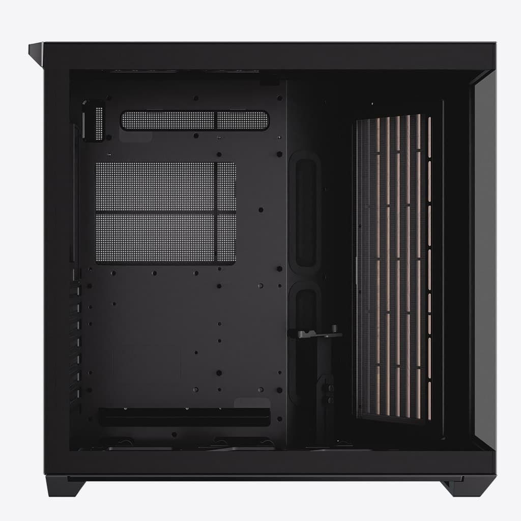 Інноваційна конструкція двокамерного панорамного корпусу з кутовим всмоктуванням повітря під кутом 45° покращує загальний потік повітря та теплову ефективність як для графічного, так і для центрального процесора, зберігаючи при цьому фірмовий вигляд із повністю загартованого скла. Кутова впускна панель підтримує три 12-сантиметрові, два 14-сантиметрові та до двох 16-сантиметрових вентилятори.