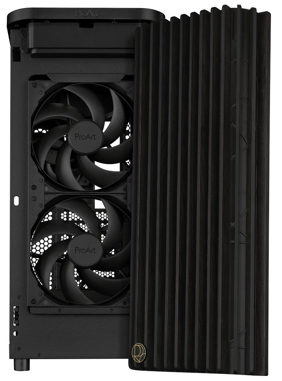 Компактна форма, просторий інтер’єр. ProArt PA401 Wood Edition оснащений двома попередньо встановленими 160-мм фронтальними вентиляторами і підтримує як горизонтальне, так і вертикальне встановлення відеокарти