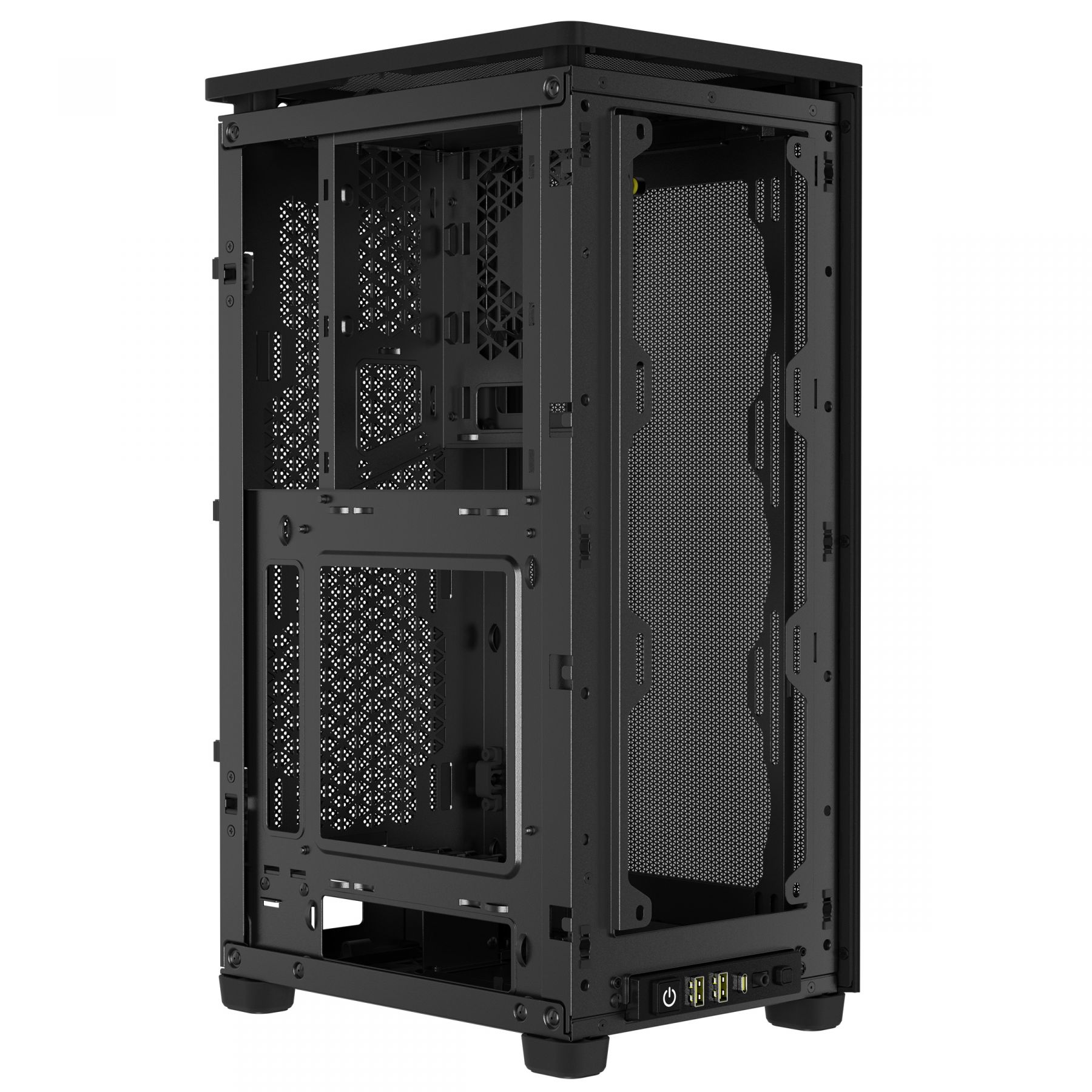 CORSAIR 2000D AIRFLOW — це корпус малого форм-фактора Mini-ITX із феноменальним охолодженням завдяки передній, бічній і задній панелям із сталевої сітки, які забезпечують достатню вентиляцію вашої системи. Оптимізований інтер’єр може вмістити до 8 корпусних вентиляторів розміром 120 мм або 2 вентиляторів розміром 140 мм для чудового потоку повітря в мінімальному просторі.
